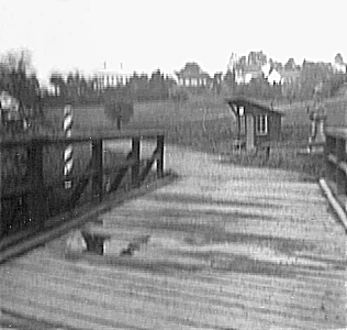 Dole: kříž na druhé straně mostu a budka německé finanční stráže.